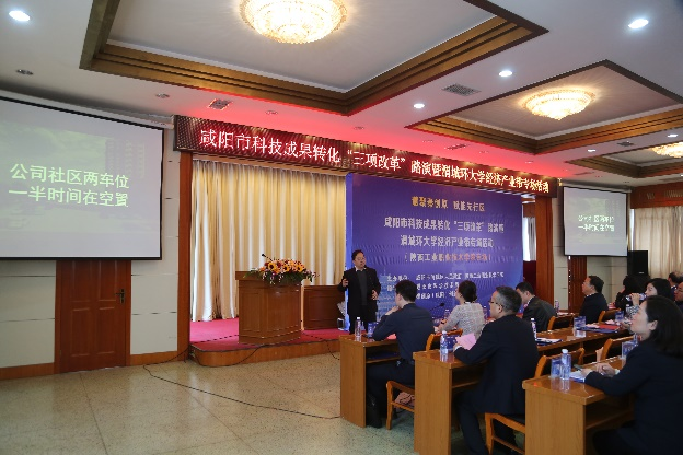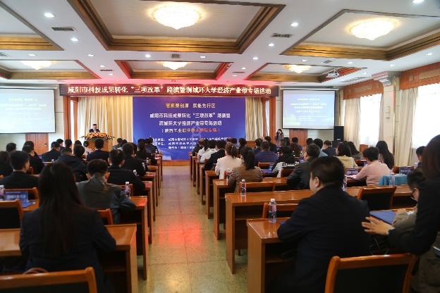 为推动“政产学研用金”深度融合,持续激发我校科研工作者科技创新活力,加速科技成果转化,3月27日,由咸阳市渭城区人民政府和我校联合主办,咸阳市科技局、秦创原(咸阳)创促中心指导举办的咸阳市科技成果转化“三项改革”路演暨渭城环大学经济产业带首场专场活动(陕西工业职业技术学院专场)在咸阳市二〇二研究所燕原宾馆圆满举行。