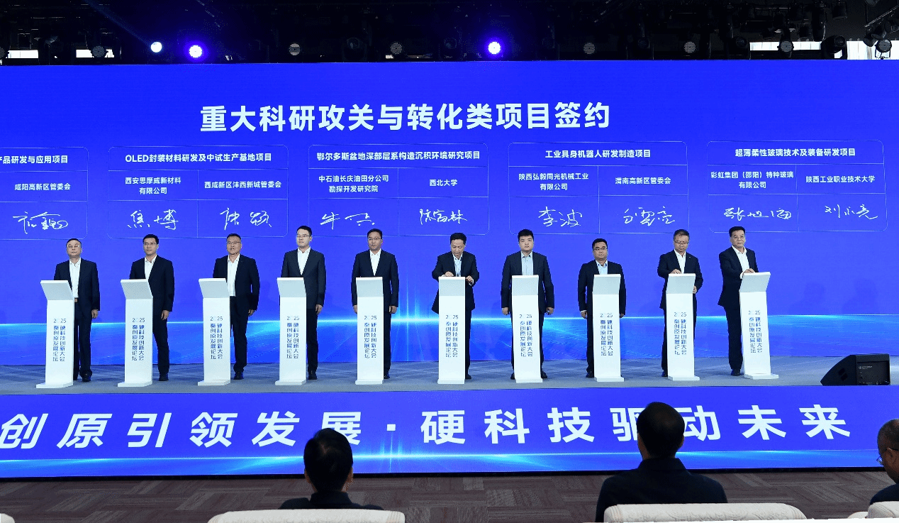 开幕式上发布了秦创原创新驱动平台建设成效、西安硬科技重大突破以及陕西省2026年暨“十五五”首批科技创新重大需求,并集中签约了20项重点项目;我校刘永亮校长与彩虹集团(邵阳)特种玻璃有限公司咸阳分公司成功签订“下拉法玻璃成型设计及技术开发”重大科研攻关与转化项目。