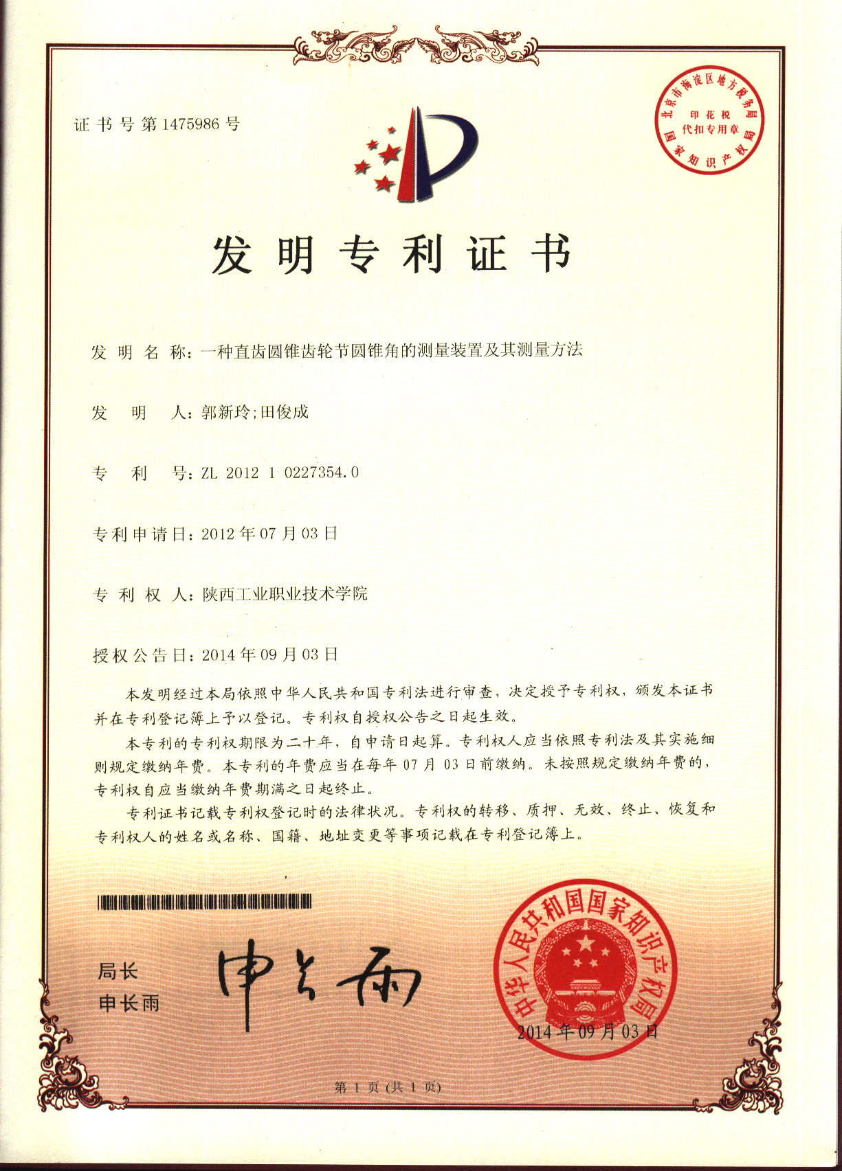 专利号:ZL 2012 1 0227354.0