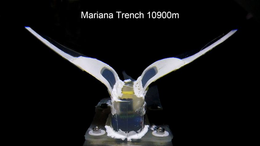 深海机器人与装备需要高强度金属耐压外壳或压力补偿系统来保护内部机电系统。浙江大学李铁风等从深海狮子鱼“头部骨骼分散融合在软组织中”这一生理特性提取仿生灵感,揭示了深海极端压力条件下软机器人功能器件破坏及驱动失效的内在机制;提出了硬质器件分散融入软基体实现内应力调控的方法,以及适应深海低温、高压环境的电驱动人工肌肉融合制造方法;建立了万米深海软机器人的系统构造方法和驱动理论。所研制的自供电软机器人成功挑战马里亚纳海沟,实现了10900米海底深潜和驱动,在南海海平面以下3224米实现深海航行。该研究大幅降低了深海机器人的重量及经济成本,推动了软体机器人在深海工程领域的应用。