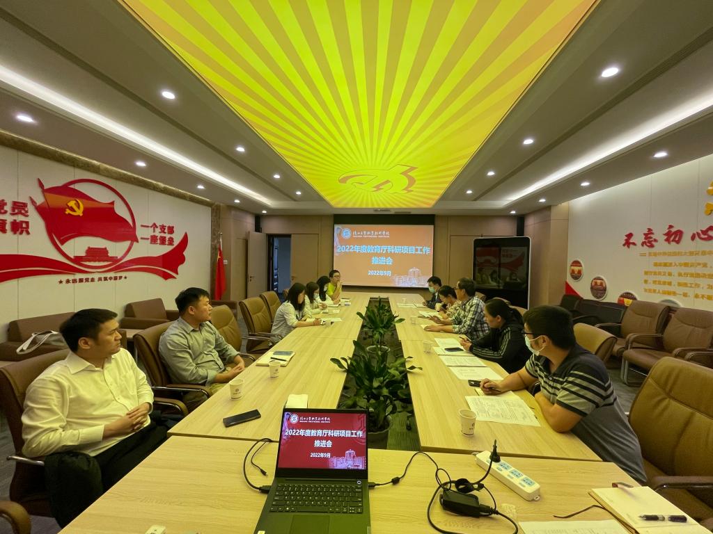 9月22日,我校2022年度省教育厅科研项目推进会在崇文楼十楼第三会议室召开,省教育厅各科研项目立项负责人和科研处有关同志参加了会议。