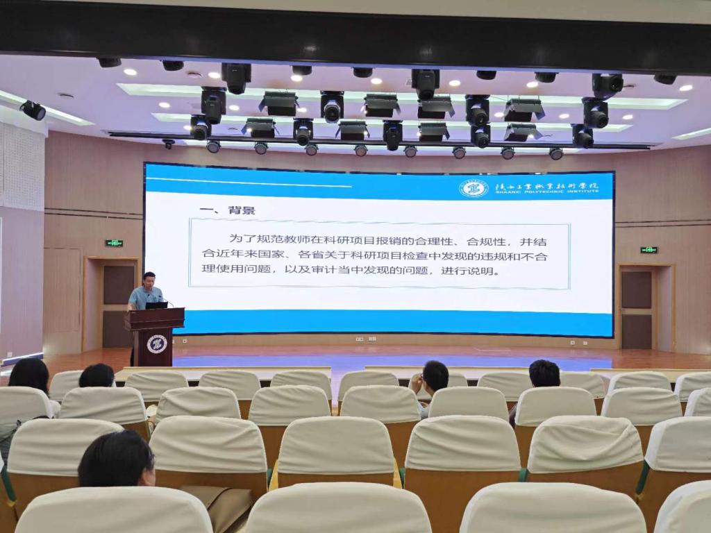 6月15日下午,我校在学术会堂召开了2023年校级科研计划项目申报暨科研制度及经费规范报销说明会,各二级学院科研联络员、拟申报2023年校级项目负责人及项目组成员、各科研平台负责人与科研处人员参加了会议。会议由科研处处长刘引涛主持。
