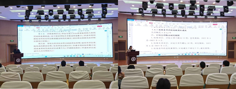 会上,首先科研处副处长余军堂解读了《陕西工业职业技术学院知识产权(专利)管理办法(修订)》(陕工院院字〔2023〕51号)、《陕西工业职业技术学院科技成果转化管理实施办法(修订)》(陕工院院字〔2023〕52号)文件细则及2023年校级科研计划项目专项内容,强调了我校科技成果转化实施细则及知识产权管理流程、内容及注意事项等。其次,科研处综合科科长屈文斌对2023年校级科研计划项目申报通知及申报指南进行说明,强调了申报要求、成果要求、申报说明及各二级学院汇总上报要求等注意事项,并演示了科研管理系统申报资料查阅方法。